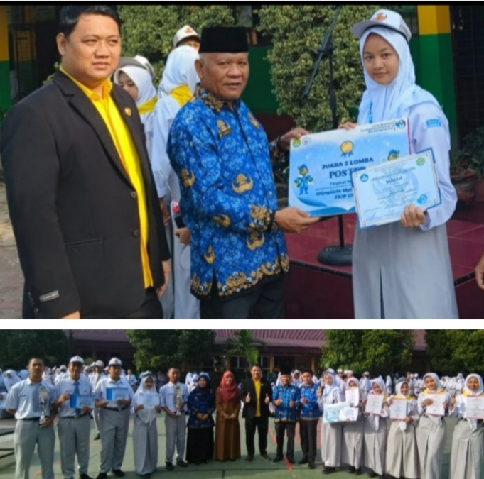Saat upacara bendera, Senin (17/2) pagi, siswa yang berprestasi langsung diberi ucapan selamat dari kepala sekolah, majelis guru dan komite sekolah.